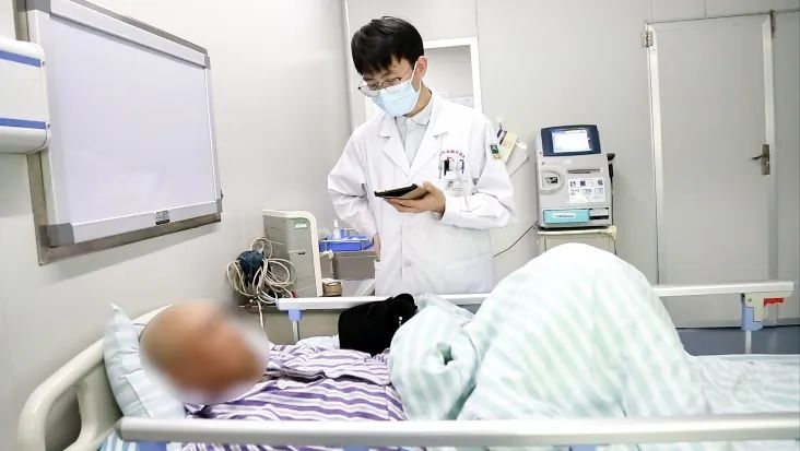 术后医生通过测试刺激器为李大爷调适靶点位置和电压参数