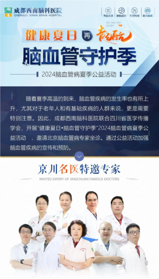 为有效预防和控制脑中风高危因素,提高群众对脑中风的识别能力,减少因脑中风导致的残疾、死亡发生,成都西南脑科医院联合四川省医学传播学会,开展“健康夏日·脑血管守护季”2024脑血管病夏季公益活动。
