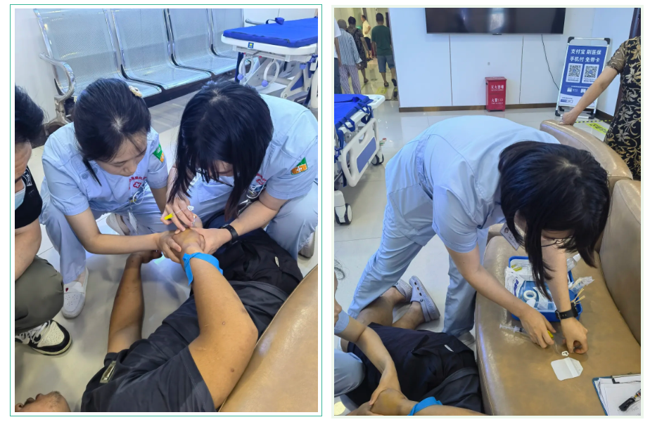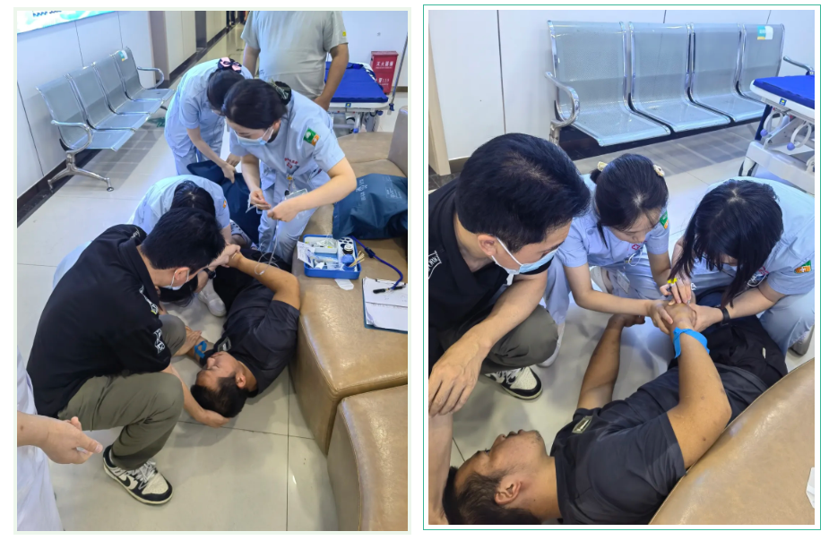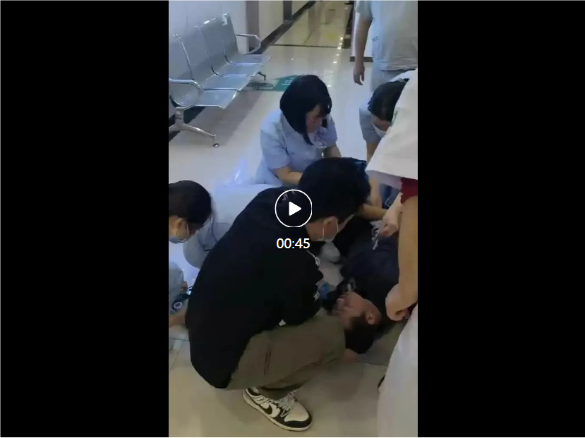 昨日午休时间,二楼门诊病人刘先生突然抽搐倒地,我院门诊主任左剑恰巧在旁边,与刚下夜班的韩伟科医生和病区护士们一起,及时进行现场抢救处置。