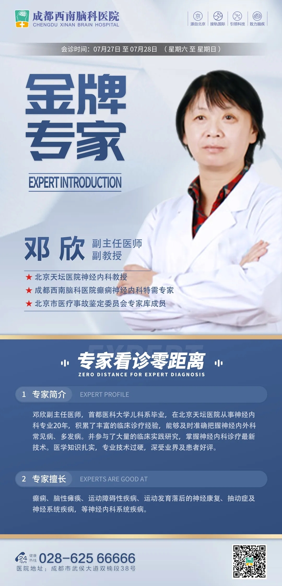 为此,我们联合四川医学传播学会,推出了“抗癫助瘫·暑假圆梦计划”2024癫痫脑瘫诊疗季(暑假)公益活动,邀请北京权威脑科专家坐诊,旨在给予每一位癫痫、脑瘫、发育迟缓的患儿实质性的帮助。