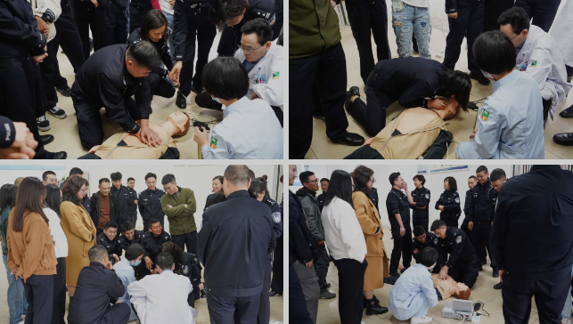 随后,在杨勤光医生和王亚琼护士的专业指导下,参训警员们分组进行练习,从模拟的紧急情况中逐步掌握正确的急救技巧。通过反复练习和互相指正,大家的急救技能得到了显著提升。