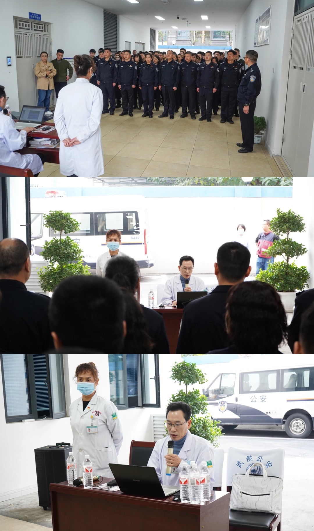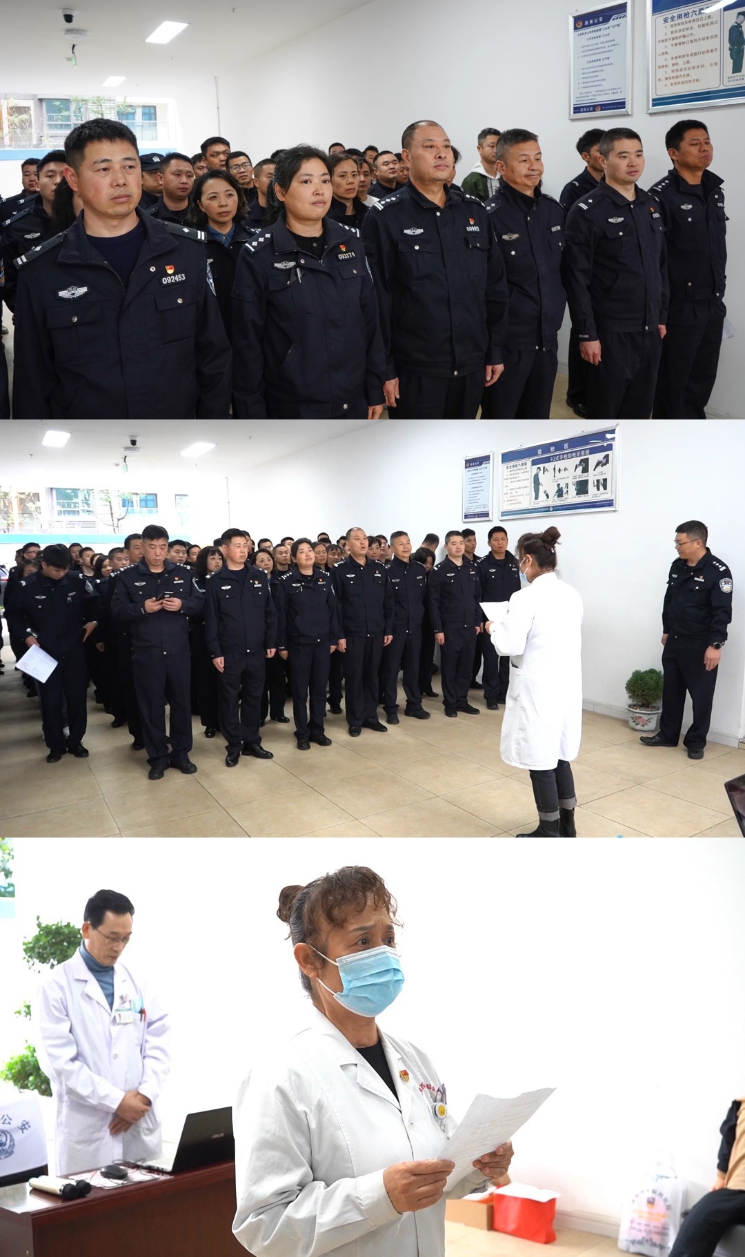 为了让理论知识更好地转化为实践能力,讲座完,护士代表王亚琼详细演示了心肺复苏的操作流程和注意事项,强调了在紧急情况下正确施救的重要性。通过模拟实操,参训警员亲身体验了急救步骤。