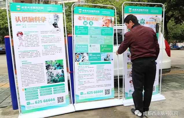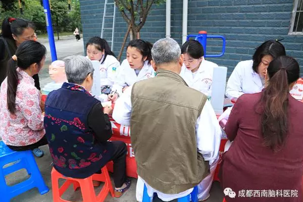 表演结束以后,成都西南脑科医院的医务人员还为社区的老人们进行了老年病的知识普及和义诊。以“认识脑科学”为主题,为大家传播老年痴呆、帕金森、脑萎缩等老年病的相关知识。
