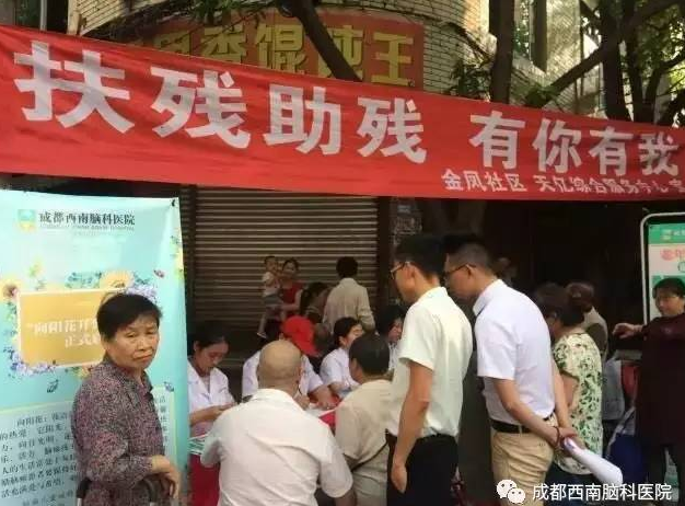在“5.21”助残日即将来临之际,金凤社区联合天亿综合服务中心于2017年5月19日上午,邀请“向阳花开公益行动”义诊团医生成都西南脑科医院的医务工作者,在辖区金凤街开展脑瘫儿关爱、帕金森、老年痴呆前期诊断等助残活动。此次活动旨在呼吁社会各界关爱残疾人尤其是脑瘫儿群体,给予他们包容、爱与帮助;呼吁关注脑健康、认识脑科学,掌握帕金森、老年痴呆等常见脑科疾病的早期症状,做到早预防、早发现、早控制。