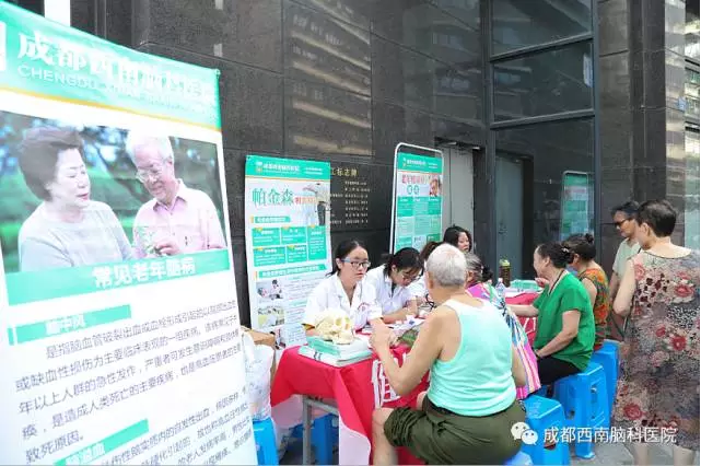 成都西南脑科医院的医护人员已经先后去到多个社区进行了公益义诊活动,这次义诊主要目的是在“文化进社区”同时,为社区的老人们进行了老年病的知识普及和义诊,提高他们的健康意识,为大家传播老年痴呆、帕金森、脑萎缩等老年病的相关知识。让更多的老年人加强脑部疾病的预防知识,意识到这种疾病的严重性。
