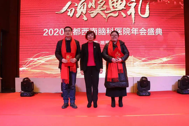 颁奖典礼上,四川大学华西医学研究中心研究员、四川大学基础医学与法医学院原副院长、成都西南脑科医院名誉院长先生做了新春献词。他说,2020年,我们将强化“医生治院,技术强院,服务兴院”的办院路线,团结全院员工共同为建设西南地区一流的脑病专科医院而努力!