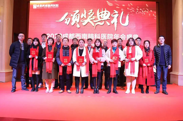 1月12日,成都西南脑科医院2019工作总结及年度优秀颁奖典礼在蓉隆重举行。成都西南脑科医院2019年度“服务之星”、“先进个人”、“优秀管理”、“先进集体”、“特别奉献”等年度大奖先后揭晓并现场颁奖。