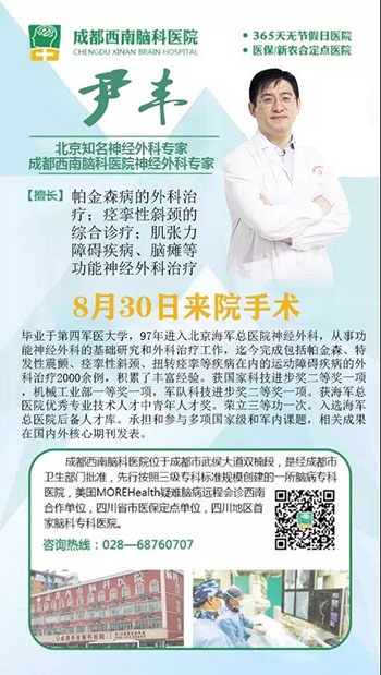自我院开展北京医生亲诊活动以来,在整个蓉城掀起了热议的浪潮。每次亲诊期间,成都乃至周边地区的脑病患者均纷纷慕名前来找医生诊治。自上次曲树铭教授亲诊以后,患者反响强烈,受到了一致赞誉及认可。为了进一步满足患者需求,8月30日(本周末),我院再次邀请解放军(北京)海军总医院神经外科尹丰教授来我院手术及会诊。届时患者不仅可以解决“看病难、看医生难”的困境,还能享受北京医生为您定制个性化治疗方案,与医生一对一问诊。
