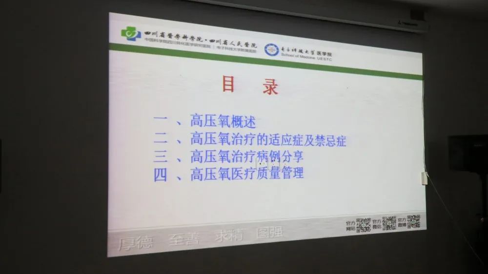 为增强我院医师对于高压氧临床运用基本知识的了解,加强科室之间互相交流学习,促进高压氧医学的临床发展,我院于11月13日上午在3楼会议室举办了“高压氧治疗的临床应用”知识讲座,由成都市高压氧质控中心医生主讲,我院病区、门诊、康复科医护人员近60人前来聆听此次交流讲座。