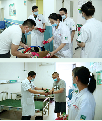 当患者接过粽子和鸭蛋的那一刻,每个人的脸上都洋溢着温暖的笑容,我们也感到很欣慰。小小的节日赠礼传递了医护人员对患者的殷切关爱,让住院患者感受到了家一般的温暖,同时过了一个有意义的端午节。