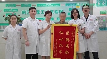 入我院前,熊女士起步转身困难,冻结前冲步态,药物治疗可起效两小时,但出现全身晃动。来到我院后,经医生会诊,为其行DBS脑起搏器手术,术后半月开机,开机后熊女士冻结前冲步态消失,走路不再拖曳,上肢抖动也消失了,熊女士很满意治治疗果,特意送来锦旗表示感谢!