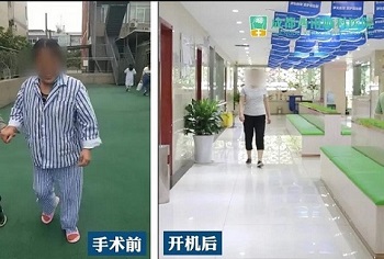 入院前可见静止性震颤,右下肢走路拖曳,身体偏向右侧,经医生会诊后,为其行DBS脑起搏器手术,术后症状减轻,术后半月开机,唐先生抖动消失,走路姿势趋于正常,唐先生及其家属非常喜悦!