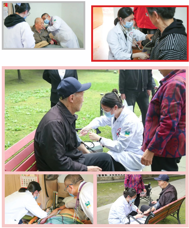 医生们认真地为老人们进行检查和诊断,针对老年人常见的慢性病进行耐心细致地解释和指导。护士们则提供了血压、血糖等常规检查,还对老人们提供了护理指导和健康宣教。成都天佑养老院的工作人员也积极协助医生护士,确保义诊过程的顺利进行。对于行动不便的老人,医护人员们更是亲自上门探望,收获养老院工作人员和老人们的一致好评!