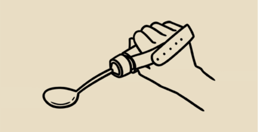 用勺子时,将勺子柄裹上一层毛巾以降低抓握难度,练习盛取食物,3至5次为1组,每次练习 1至2组;